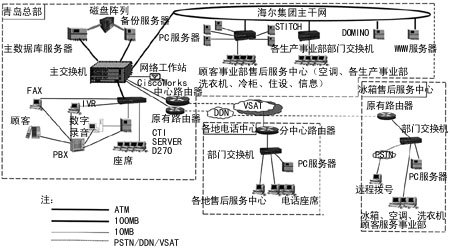 另外,海爾集團電話中心原有的顧客服務(wù)系統(tǒng)屬于第二代Call Center 系統(tǒng),話務(wù)員的工作量較大,服務(wù)功能受到很大的限制,特別是客戶信息及時收集的速度受到影響。為了滿足對市場快速響應(yīng)的需要,海爾集團決定建立具有智能功能(如ACD:自動呼叫分配)的第三代呼叫中心,采用第三代具有ACD技術(shù)(如來電主叫號碼自動顯示、呼叫轉(zhuǎn)移、自動回撥等)的呼叫中心,向客戶提供更個性化的服務(wù)。