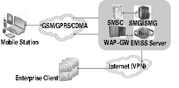 EMISS 移動信息服務(wù)系統(tǒng)是構(gòu)建于企業(yè)平臺與移動運(yùn)營商數(shù)據(jù)支撐平臺之間的增值業(yè)務(wù)服務(wù)系統(tǒng),在主體結(jié)構(gòu)上劃分為EMISS Server 和Enterprise Client。