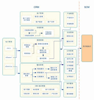 實(shí)現(xiàn)動態(tài)價值鏈環(huán)境下的CRM,支持電子商務(wù)、協(xié)作商務(wù),并與SCM集成。