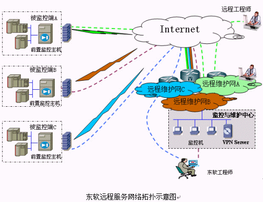 對(duì)于需要遠(yuǎn)程服務(wù)的IT系統(tǒng),只要可以連接INTERNET,就可使用合法的帳號(hào)接入遠(yuǎn)程服務(wù)平臺(tái),不需做額外的復(fù)雜設(shè)置;同樣,對(duì)于遠(yuǎn)程服務(wù)工程師,無(wú)論身在何處,只要可以連接INTERNET,便可登錄到遠(yuǎn)程服務(wù)平臺(tái),利用專(zhuān)業(yè)工具監(jiān)控或調(diào)試遠(yuǎn)端系統(tǒng)