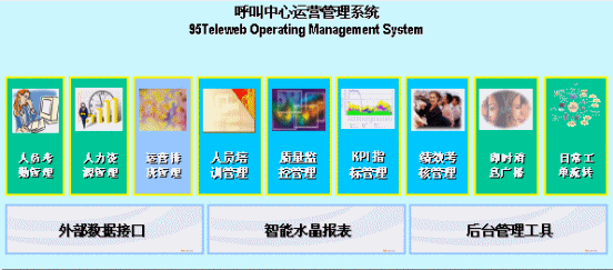 Teleweb-OMS運(yùn)營管理系統(tǒng)共有11個(gè)模塊,涵蓋了動(dòng)態(tài)質(zhì)檢管理、培訓(xùn)管理、考勤管理、人力資源管理、話務(wù)預(yù)測(cè)與自動(dòng)排班、KPI管理、績效考核、部門間的需求單管理等各個(gè)環(huán)節(jié),并且提供了外部數(shù)據(jù)抽取功能和報(bào)表自動(dòng)生成功能。