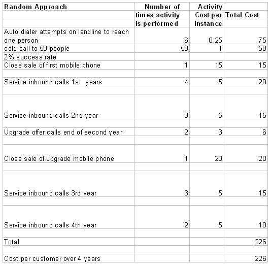 表格1:獲得客戶的隨機(jī)法的行動成本計(jì)算