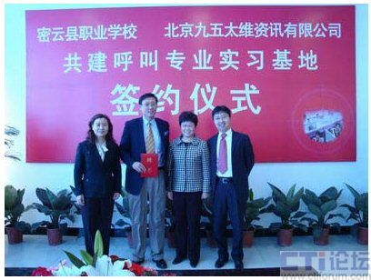 CTI論壇(ctiforum)04月30日消息: 近日,密云縣職業(yè)學(xué)校與北京九五太維資訊有限公司校企合作共建呼叫專業(yè)實習(xí)基地簽約儀式在密云縣職業(yè)學(xué)校隆重舉行,市教委職成處處長李敏,縣委常委副縣長王春林、副縣長錢福生、副縣長徐芳出席簽約儀式并發(fā)表了講話。密云縣教委主任李鐘勤,北京九五太維資訊有限公司董事長汪遠(yuǎn),首席執(zhí)行官李寶民及其培訓(xùn)師團(tuán)隊,密云縣經(jīng)濟(jì)開發(fā)區(qū)總公司及部分入?yún)^(qū)呼叫企業(yè)出席了簽約儀式。在簽約儀式上,密云縣教委主任李鐘勤向九五太維公司首席執(zhí)行官李寶民博士頒發(fā)了聘書,聘請李寶民博士為密云縣職業(yè)學(xué)校名譽校長。