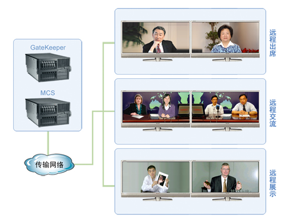 遠(yuǎn)程出席、遠(yuǎn)程展示、遠(yuǎn)程交流、遠(yuǎn)程教育、行政會(huì)議、協(xié)同工作等。