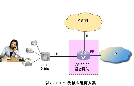VG 80-20提供2個(gè)E1語(yǔ)音接口,用于接連接程控電話交換機(jī)的E1中繼線,通過(guò)以太口連接到IP網(wǎng)中。VG 80-20可以作為縱向網(wǎng)核心,企業(yè)總部或大型分支的核心語(yǔ)音網(wǎng)關(guān)設(shè)備,輕松實(shí)現(xiàn)長(zhǎng)途旁路IP電話功能。在具有豐富的IP電話特性的同時(shí),將回波抵消、靜音壓縮、舒適噪音、防抖動(dòng)等措施,與安全、QoS等網(wǎng)絡(luò)特性結(jié)合,確保語(yǔ)音和傳真數(shù)據(jù)在IP網(wǎng)絡(luò)上的傳輸質(zhì)量。