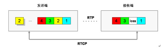 利用實時傳輸控制協(xié)議RTCP反饋信息提供丟包重發(fā)功能,當(dāng)接收端檢測到有丟包時,判定對端是否來得及進(jìn)行重發(fā),可以的話通過RTCP控制信道向發(fā)送端請求重發(fā)。
