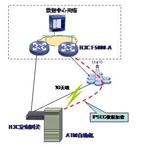上海電信根據(jù)交通銀行的實際情況,提出了“線路+設備+業(yè)務”一體化的融合解決方案,采用H3C提供的商務領航定制網(wǎng)關和IPSec VPN解決方案構(gòu)建。 通過H3C Navigator B1-2+定制網(wǎng)關,將ATM自助機通過有線主鏈路與總部數(shù)據(jù)中心安全互聯(lián),實現(xiàn)關鍵數(shù)據(jù)的安全傳輸,同時借由定制網(wǎng)關的3G接口,實現(xiàn)3G鏈路和有線主鏈路的相互備份。該方案保障了ATM自助機數(shù)據(jù)的安全傳輸,有效降低了交通銀行的運營成本,提升了效率。