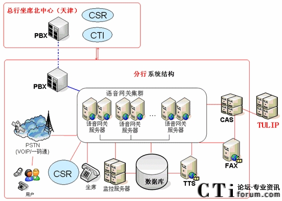 對于山東省分行連接總行呼叫中心北中心心的情況,農業(yè)銀行對系統(tǒng)的總體結構已經做了比較詳細的規(guī)劃,異地坐席中心的系統(tǒng)結構圖如下: