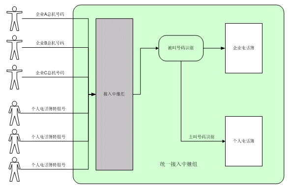 個人電話簿呼叫中,系統(tǒng)將根據(jù)主叫號碼,鑒別出主叫的身份,選擇進入相應(yīng)的個人電話簿,提供個人電話簿服務(wù)。