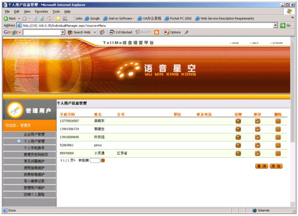 語音電話簿業(yè)務(wù)面對的客戶分為集團客戶和個人客戶。