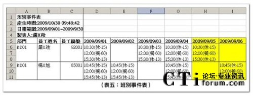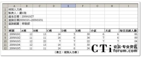 班別人力表