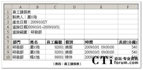 此表主要呈現(xiàn)員工請假明細(xì),用于現(xiàn)場管理時,主管審核座席員臨時請假的核可依據(jù),以及結(jié)算考勤或是考核時的查核數(shù)據(jù)。