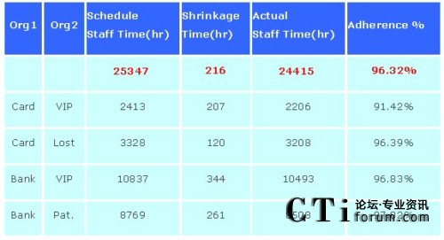 缺點是,此報表顯示出的只是表定出席人數(shù),而非實際現(xiàn)場出席人數(shù),故在呼叫中心現(xiàn)場管理時,可導(dǎo)入具有遵時異常管理功能或座席監(jiān)控模塊之人力資源優(yōu)化系統(tǒng)(例如:Grandsys