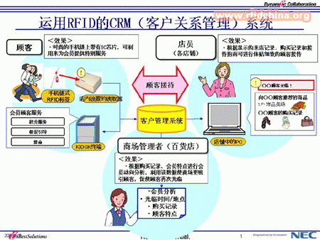 使用電子標(biāo)簽(RFID)技術(shù),構(gòu)筑尖端客戶關(guān)系管理(CRM)系統(tǒng),提高百貨公司顧客來店數(shù)量及銷售額。