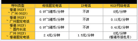 若香港與廣州兩地的終端計算機都同時安裝有VOIP的適配器,只需要通過Internet則可以實現(xiàn)免費通話,而通過傳統(tǒng)的固定電話通話則每分鐘需要耗費0.97~3的港幣;而香港通過VOIP播打廣州本地的固定電話,則需要廣州本地的VOIP計算機再飛線到所需播打的號碼上,簡單地說就是通過廣州本地的VOIP適配器利用廣州本地的固話線路播打香港所需接通的廣州號碼,從而實現(xiàn)長途電話本地化,費用僅僅是廣州本地固話所需的話費每分鐘0.11元,而通過傳統(tǒng)的固定電話通話則每分鐘需要耗費0.97~3的港幣;而香港通過VOIP播打國內的長途電話,其原理跟播打廣州本地普通電話完全一致,簡單地說就是通過廣州本地的VOIP適配器利用廣州本地的固話線路播打香港所需接通的國內長途號碼,費用僅僅是廣州本地固話播打國內長途所需的話費每分鐘0.41元,而通過傳統(tǒng)的固定電話通話則每分鐘需要耗費0.97~3的港幣;而相反過來廣州本地通過VOIP播打香港電話原理也一樣,就是通過香港本地的VOIP適配器利用香港本地的固話線路播打廣州所需接通的香港電話,費用方面,傳統(tǒng)的兩地固定電話都需要收取每分鐘2.4元的費用,而通過IP電話卡也需要1.5元/分鐘的費用,而通過VOIP網絡電話的方式則可以實現(xiàn)免費通話,主要是由于香港本地的市話是包月的形式任打。