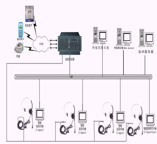 一類是基于傳統(tǒng)的PBX方式,為專用排隊機(jī)結(jié)構(gòu),該結(jié)構(gòu)基于自動話務(wù)分配,稱為交換機(jī)解決方案另一類是基于unPBX方式,為工控智能交換平臺結(jié)構(gòu),主要基于工控機(jī)和語音板卡,稱為工控機(jī)解決方案
