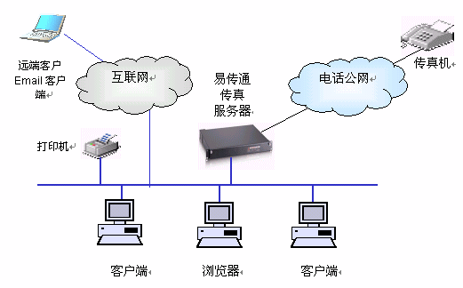 易傳通 網(wǎng)絡傳真服務器是基于網(wǎng)絡的瀏覽器/服務器與客戶端/服務器(B/S 與C/S)設計的,它采用了易傳通 專業(yè)的系統(tǒng)設計,包括國家驗證的專業(yè)傳真軟件系統(tǒng),配上專用的硬件,一體化設計,只需接上網(wǎng)線、電話線,電源,即可使用,用戶無需添加任何其他設備,即可讓您享受網(wǎng)絡傳真帶來的方便、安全、快捷。