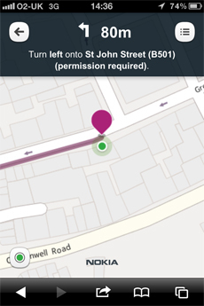 諾基亞地圖移動網(wǎng)站目前將會向所有設(shè)備的瀏覽器開放其Turn-by-turn步行語音導(dǎo)航服務(wù),其中包括iPhone。