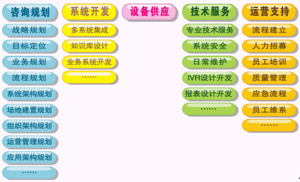 經(jīng)過認(rèn)真分析國內(nèi)企業(yè)實施客戶聯(lián)絡(luò)中心系統(tǒng)的現(xiàn)狀,正音科技公司提出了綜合咨詢規(guī)劃、系統(tǒng)開發(fā)、設(shè)備供應(yīng)、技術(shù)服務(wù)、運營支持等五個方面的客戶聯(lián)絡(luò)中心建置解決方案,不僅方便企業(yè)對整個建置過程進(jìn)行整體上的把握,而且正音科技的專業(yè)團(tuán)隊也能幫助企業(yè)實現(xiàn)最佳的效果。對于任何一個追求卓越客戶聯(lián)絡(luò)中心的企業(yè)來說,這五個方面都是作為一個整體,缺一不可的。