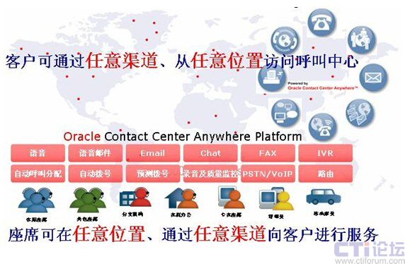 傳統(tǒng)上,客戶關(guān)系管理(CRM)應(yīng)用軟件與電話一直是來自不同供應(yīng)商的相互分開的、獨(dú)立的應(yīng)用產(chǎn)品,這就需要語(yǔ)音與數(shù)據(jù)平臺(tái)之間實(shí)現(xiàn)廣泛的計(jì)算機(jī)-電話集成。因此,由于高成本且集成需要較長(zhǎng)時(shí)間,許多公司不愿提供真正意義上的多通道聯(lián)絡(luò)中心。作為一個(gè)單一供應(yīng)商,甲骨文利用Contact