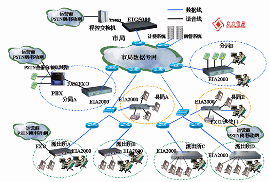 公安系統(tǒng)作為一家話務(wù)量較大的國(guó)家職能部門,平時(shí)各個(gè)分局,各個(gè)派出所之間及上下級(jí)之間的電話、傳真等交流非常多,每月支付的話費(fèi)數(shù)目相當(dāng)可觀,公安部門急需找到一種價(jià)格更便宜、服務(wù)更周到,同時(shí)使用便捷的通話解決方案,以降低辦公費(fèi)用,提高工作效率。采用了深圳眾方信息的VoIP解決方案,能使得公安部門整體話費(fèi)節(jié)省了至少50%以上,而且能實(shí)現(xiàn)多種業(yè)務(wù)的綜合處理,包括語(yǔ)音、數(shù)據(jù)、視頻、圖像等。