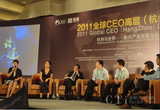 CTI論壇(ctiforum)9月21日消息(記者 張潔):9月13日下午,2011全球CEO高層(杭州)論壇在凱悅大酒店舉行。本次論壇由聯(lián)合國工業(yè)發(fā)展組織,杭州市人民政府主辦,論壇以“杭州與世界:新興產(chǎn)業(yè)發(fā)展與合作”為主題,圍繞浙江企業(yè)在新興產(chǎn)業(yè)轉(zhuǎn)型創(chuàng)新過程中的關(guān)注點(diǎn)即新興產(chǎn)業(yè)技術(shù)分享、商業(yè)模式探討以及融資渠道開拓等三方面,攜手幾十位位國內(nèi)外著名CEO共同探討解決之道,并借助會議的延展尋求可行之道。