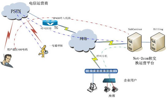 軟交換實(shí)現(xiàn)400號碼IP運(yùn)營圖