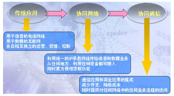 網(wǎng)絡(luò)技術(shù)的日趨完善和商業(yè)社會(huì)對(duì)網(wǎng)絡(luò)的依賴,網(wǎng)絡(luò)已經(jīng)成為整個(gè)商業(yè)社會(huì)前進(jìn)的核心動(dòng)力,每一個(gè)微小的進(jìn)步都或多或少地與基于IP的技術(shù)運(yùn)用有關(guān)。網(wǎng)絡(luò)將相互獨(dú)立的計(jì)算機(jī)組合起來(lái)協(xié)同工作,已經(jīng)創(chuàng)造出原來(lái)不可以想象的價(jià)值。今天,以整合各種通信手段和工具為特點(diǎn)的“協(xié)同通信”,已經(jīng)成為一個(gè)廣為人知的理念,人們也期待通過(guò)“協(xié)同通信”超越傳統(tǒng)的通信邊界,實(shí)現(xiàn)簡(jiǎn)便、快捷、準(zhǔn)確而無(wú)處不在的通信。