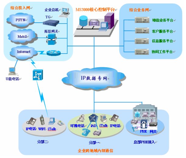 多功能的內(nèi)部通信業(yè)務(wù)(視頻、WiFi無(wú)線、軟電話漫游、即時(shí)通信、語(yǔ)音信箱、多方通話等)