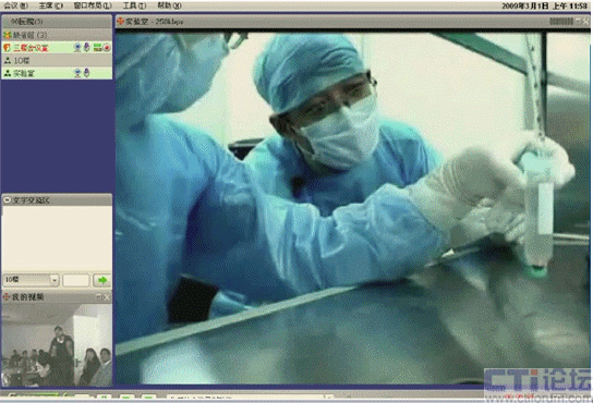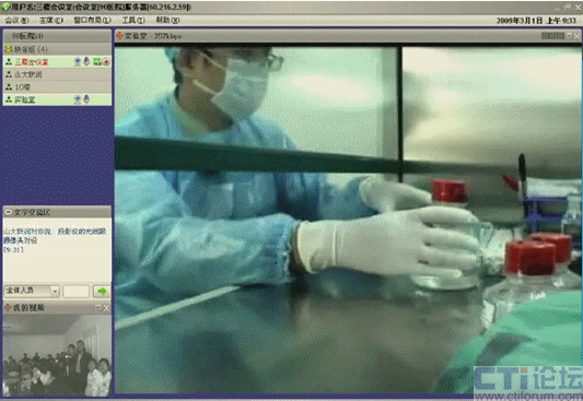 聽完眾多專家的精彩介紹后,與會人員希望能夠看到干細(xì)胞移植治療的臨床應(yīng)用現(xiàn)場演示。而干細(xì)胞移植過程是在專門的實(shí)驗(yàn)室里面進(jìn)行,一是實(shí)驗(yàn)室的面積比較小,容納不了這么多人員參加,另外實(shí)驗(yàn)室環(huán)境要求非常嚴(yán)格。如何把實(shí)驗(yàn)室里面的現(xiàn)場演示展示給眾多與會人員,這令會議的組織者非常頭疼。山大聯(lián)潤了解到濟(jì)南軍區(qū)總醫(yī)院遇到的困難后,派專門的技術(shù)人員與實(shí)驗(yàn)室充分交流,為他們提供了一個(gè)很好的可實(shí)施方案。在實(shí)驗(yàn)室安裝了一個(gè)可遙控的攝像頭,通過視維視頻會議遠(yuǎn)程遙控觀看實(shí)驗(yàn)室現(xiàn)場。在實(shí)驗(yàn)室里面的江主任與他同事一邊做實(shí)驗(yàn),一邊與場外的人員溝通交流。