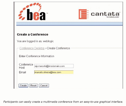在上述應(yīng)用中,一用戶建立了一個(gè)多媒體會(huì)議會(huì)話。該會(huì)議的進(jìn)行一如我們平常所熟悉的基于運(yùn)營(yíng)商的語(yǔ)音會(huì)議系統(tǒng)的商務(wù)會(huì)議。不同的是,它使用了基于Web的圖形交互, 使得用戶可以建立會(huì)議時(shí)間以及受邀請(qǐng)的參與人的列表,此外, 該應(yīng)用還發(fā)出了一封含有該會(huì)議相關(guān)的聯(lián)絡(luò)信息的電子郵件。并且,它還充分利用了Cantata SnowShore 媒體服務(wù)器的高級(jí)多媒體功能為會(huì)議參與人提供豐富的多媒體體驗(yàn)。