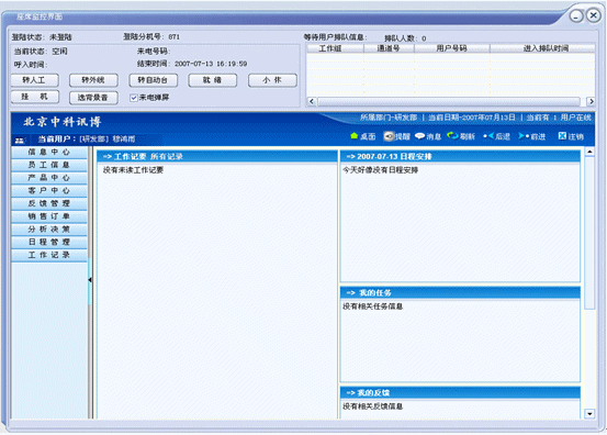 多種排隊(duì)機(jī)制,所有來電排隊(duì)信息都有顯示,提供對來電上移、下移、移到最前或轉(zhuǎn)自動(dòng)臺(tái)處理等多種可選擇的排隊(duì)功能,來電可根據(jù)服務(wù)要求,選擇不同的服務(wù)部門及人員,系統(tǒng)都做了優(yōu)化處理