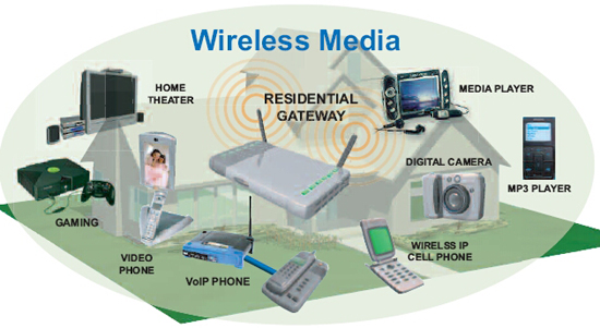 在家中傳送廣播質(zhì)量的視頻將需要住宅網(wǎng)關(guān)整合多種有線和無線技術(shù)、安全特性和服務(wù)質(zhì)量(QoS)能力。住宅網(wǎng)關(guān)需要支持最新的無線連網(wǎng)技術(shù),例如目前的802.11g以及暫露頭角的802.11n、802.11d/e和802.11r標(biāo)準(zhǔn)。多種有線家庭連網(wǎng)技術(shù)也在考慮之內(nèi),所以住宅網(wǎng)關(guān)應(yīng)能支持以太網(wǎng)、同軸電纜多媒體聯(lián)盟(MOCA)、家用電話線網(wǎng)絡(luò)聯(lián)盟(HPNA)、家庭插電聯(lián)盟(HPPA)和通用電力線協(xié)會(UPA)等機構(gòu)推出的有線家庭聯(lián)網(wǎng)技術(shù)。