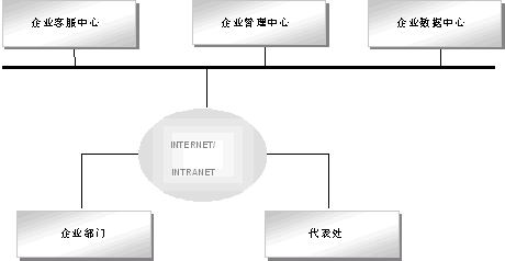 企業(yè)上網(wǎng)機附加電子商務(wù):通過支付網(wǎng)關(guān)與金融機構(gòu)建立聯(lián)系;通過認(rèn)證網(wǎng)關(guān)與法律機構(gòu)建立聯(lián)系;通過中間件與郵件系統(tǒng)與其它企業(yè)建立聯(lián)系。