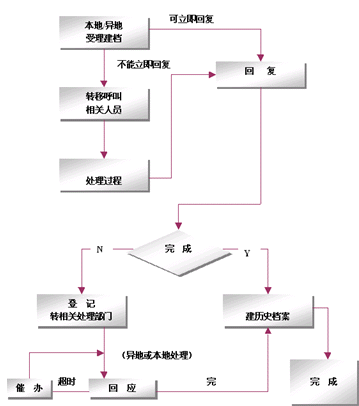 整個網(wǎng)絡(luò)采用只在集中受理中心設(shè)立一個集中監(jiān)控系統(tǒng),負(fù)責(zé)監(jiān)控全網(wǎng)的客戶業(yè)務(wù)、服務(wù)、技術(shù)支持和投訴等等業(yè)務(wù),該系統(tǒng)基于事件管理的思想,提供包括創(chuàng)建、解決、分配、反饋、跟蹤、回訪等節(jié)點在內(nèi)的閉環(huán)處理模式。例如系統(tǒng)可以根據(jù)客戶反映問題的時間以及緊急程度,按照系統(tǒng)約定的處理時限對處理過程實時跟蹤和記錄,當(dāng)處理超時時回自動給出報警信息,提示相關(guān)的操作人員及主管人員。同時根據(jù)約定還可以將受理的問題按照約定的方式自動發(fā)送到相關(guān)的處理部門,由處理部門進行處理。