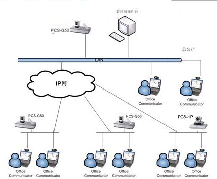 在此方案中,在宜興公司大樓六樓報(bào)告廳配置一套SONY PCS-G50高端視頻會議終端;并在此終端內(nèi)安裝了支持6點(diǎn)多點(diǎn)會議的H.323內(nèi)置多點(diǎn)MCU和數(shù)據(jù)雙流模塊。