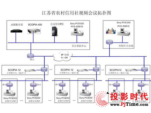 本次設(shè)計(jì)方案中,上海索高通過(guò)對(duì)江蘇農(nóng)信社的全省分布和各地實(shí)際需求,提供72套Sony PCS-G50視頻會(huì)議終端,IP網(wǎng)絡(luò)支持最大4Mbps的視頻傳輸速率,為用戶提供4CIF的高質(zhì)量視頻效果,配合H.264的強(qiáng)大功能一起獲得更高的媒體處理能力。通過(guò)Radvision
