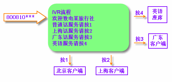 當(dāng)客戶撥打電話進入MVB2000系統(tǒng)平臺的呼叫中心。通過IVR導(dǎo)航,可隨意打到各地的客戶端,再通過客戶端進行更加細致的分類。并且,每個客戶端都可以互相轉(zhuǎn)接。IVR流程可以無限下拉菜單。