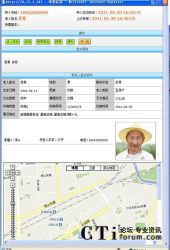 圖:居家養(yǎng)老類GPS呼叫中心座席彈屏界面圖示