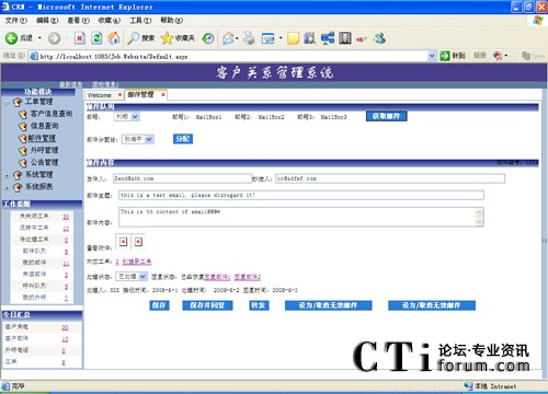 系統(tǒng)支持多個郵件隊列的管理,用戶可以根據(jù)業(yè)務(wù)的需要在系統(tǒng)管理中進(jìn)行郵箱設(shè)置。同時系統(tǒng)也支持多種模式的郵件處理,系統(tǒng)自動分配、組長手動分配以及座席手動獲取,以適應(yīng)不同業(yè)務(wù)的需要。