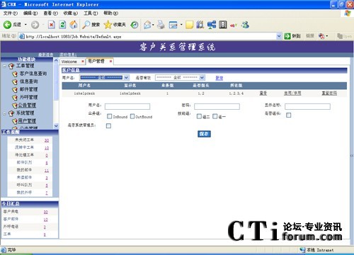系統(tǒng)配置管理為管理員提供了一個管理的平臺,來對系統(tǒng)的用戶、數(shù)據(jù)、參數(shù)、類型等進(jìn)行靈活的配置,從而適應(yīng)快速變化的業(yè)務(wù)需求。系統(tǒng)用戶管理包括座席人員賬號的設(shè)置、座席組的指定、座席技能的管理以及權(quán)限的分配等。