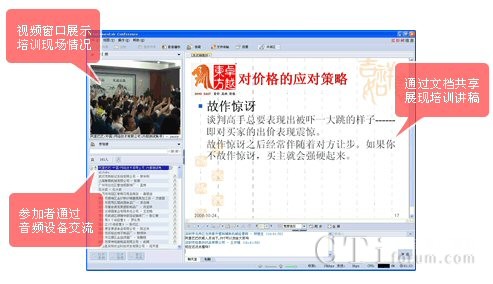 高清晰的視頻,可以讓網(wǎng)絡(luò)培訓(xùn)用戶(hù)感受培訓(xùn)現(xiàn)場(chǎng)氣氛。文檔共享和音頻可以讓用戶(hù)感受培訓(xùn)人員的聲情并茂。同時(shí)用戶(hù)可以在網(wǎng)絡(luò)培訓(xùn)系統(tǒng)的答疑區(qū)提出自己的問(wèn)題,和培訓(xùn)人員進(jìn)行互動(dòng)。