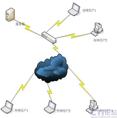 由于視頻會議系統(tǒng)服務(wù)器放在總部內(nèi)網(wǎng),通過端口影射,內(nèi)網(wǎng)用戶用內(nèi)網(wǎng)服務(wù)器地址登陸,外網(wǎng)用戶通過外網(wǎng)IP登陸即可,實現(xiàn)內(nèi)外網(wǎng)互聯(lián)。