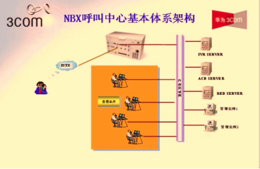 - 華為-3Com NBX采用數(shù)據(jù)包交換技術(shù),實(shí)現(xiàn)了語音與數(shù)據(jù)的融合。NBX呼叫中心系統(tǒng)平臺可以為客戶服務(wù)人員提供軟件和硬件的IP電話終端,用戶只需將坐席PC或IP話機(jī)接到桌面網(wǎng)口即可,無須重新部署語音線路,同時(shí)利用語音與數(shù)據(jù)融合的技術(shù)使得客服中心實(shí)現(xiàn)了統(tǒng)一的通信網(wǎng)絡(luò),減少的2套布線的繁瑣,大大降低了系統(tǒng)的維護(hù)及管理的工作量。