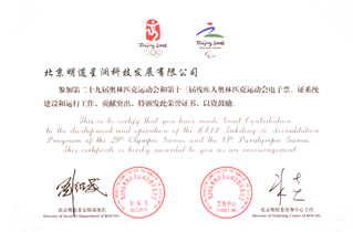 2008奧運(yùn)會、殘奧會榮譽(yù)證書
