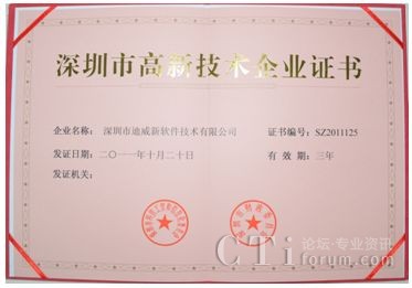 迪威通過“深圳市高新技術(shù)企業(yè)認定”