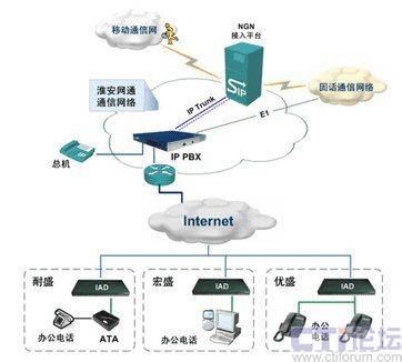 采用NGN+IP PBX的解決方案,不僅可以增強IP PBX組網和業(yè)務通信能力,還可以配合運營商的NGN平臺開拓多種業(yè)務模式,成為NGN的有效擴展,為運營商和最終用戶提供雙贏的有利協(xié)助。淮安網通就采用了Zed-3(捷思銳科技)的IP PBX進行大客戶的語音接入。該IP PBX主要提供了用戶分機號碼分配功能,并為用戶提供語音池(IVR)、語音信箱、保密呼叫、NGN業(yè)務接入等多種應用服務。