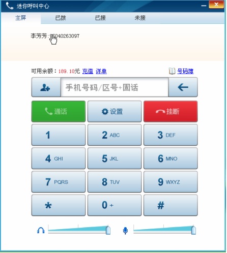 點(diǎn)擊迷你呼叫中心圖標(biāo),迷你呼叫中心的主屏自動(dòng)彈出。