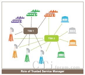 可信服務(wù)管理 (TSM)為復(fù)雜的、有眾多參與者的NFC生態(tài)系統(tǒng)帶來的穩(wěn)定性及可預(yù)見性。其核心作用是分配和管理各個(gè)服務(wù)提供商的應(yīng)用。它是移動(dòng)運(yùn)營(yíng)商、銀行和公交公司的一個(gè)共同的聯(lián)絡(luò)點(diǎn)。對(duì)移動(dòng)NFC應(yīng)用進(jìn)行安全下載和生命周期管。可信服務(wù)管理必須贏得參與各方的信任才能完成這一任務(wù)。