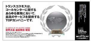 作為信息處理外包產(chǎn)業(yè)的先驅(qū),transcosmos公司于1966年正式開始了自己的業(yè)務(wù)。從此以后,我們?nèi)诤喜⑤敵鋈瞬排c技術(shù),提供高附加值的外包服務(wù),致力于增強(qiáng)客戶公司的競(jìng)爭(zhēng)力,F(xiàn)已拓展到12000多人的規(guī)模,是日本最大和最著名的外包客戶互動(dòng)服務(wù)供應(yīng)商之一。目前在專業(yè)技術(shù)支持領(lǐng)域?yàn)榱腥毡镜谝弧?br />
